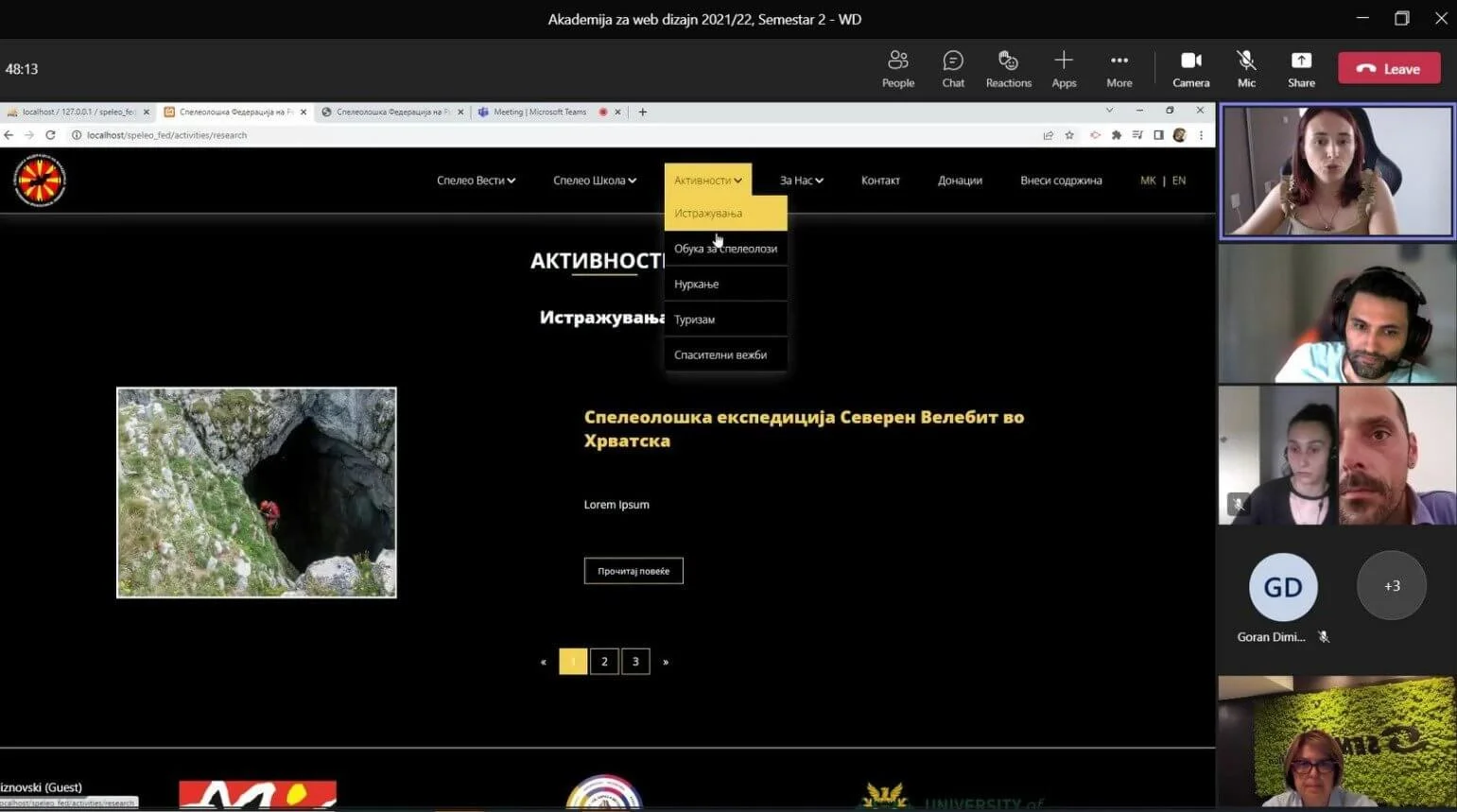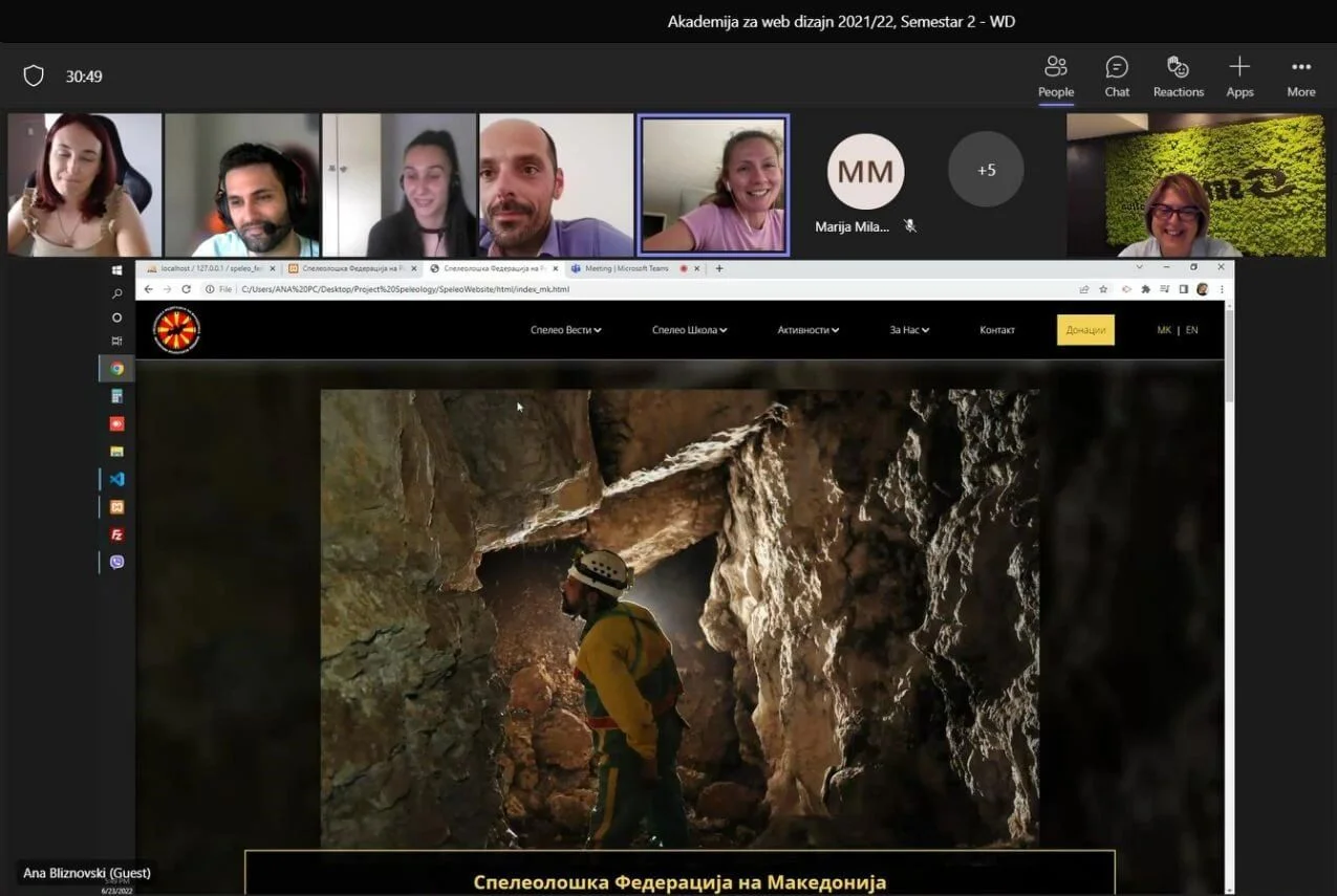 The students from the Web Design Academy, generation 2021/22 presented their socially responsible projects, webpage designs for the Macedonian Speleological Federation.